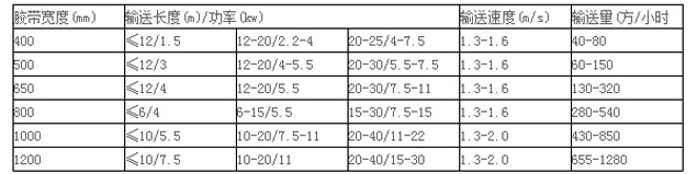 DTⅡ、TD75型皮帶輸送機按其支架結(jié)構(gòu)有固定式的移動式兩種:按輸送帶材料有膠帶、塑料帶和鋼芯帶之分。皮帶輸送機的工作環(huán)境溫度一般在-10oC--+40oC之間,要求物料溫度不超過70oC;耐熱橡膠帶可輸送120oC以下的高溫物料。物料溫度更高時不宜采用膠帶輸送機。當輸送具有酸性堿性油類物質(zhì)和有機溶劑等成分的物料時,需采用耐油、耐酸堿的橡膠帶式塑料帶。帶式輸送機的帶寬可分為:500、650、800、1000、1200和1400mm。用戶可根據(jù)帶式輸送機的輸送長度,物料的種類、容重、輸送量、輸送長度等諸因素通過計算確定輸送機的布局以及所選用的膠帶寬度、帆布層數(shù)和膠帶厚度。